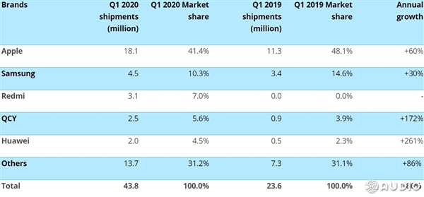 According to Apple’s supply chain information, the supply of AirPods components for Apple this year has reached 80-90 million pieces. This is in line with the data from Counterpoint Research, a well-known market research organization at the beginning of the year, that they expect the sales of Apple’s AirPods in 2020 to exceed 100 million. But with the official launch of the iPhone 12, the entire iPhone series will no longer feature wired headsets. Moreover, the sales of the AirPods series may have a rapid rise in the remaining two months.
