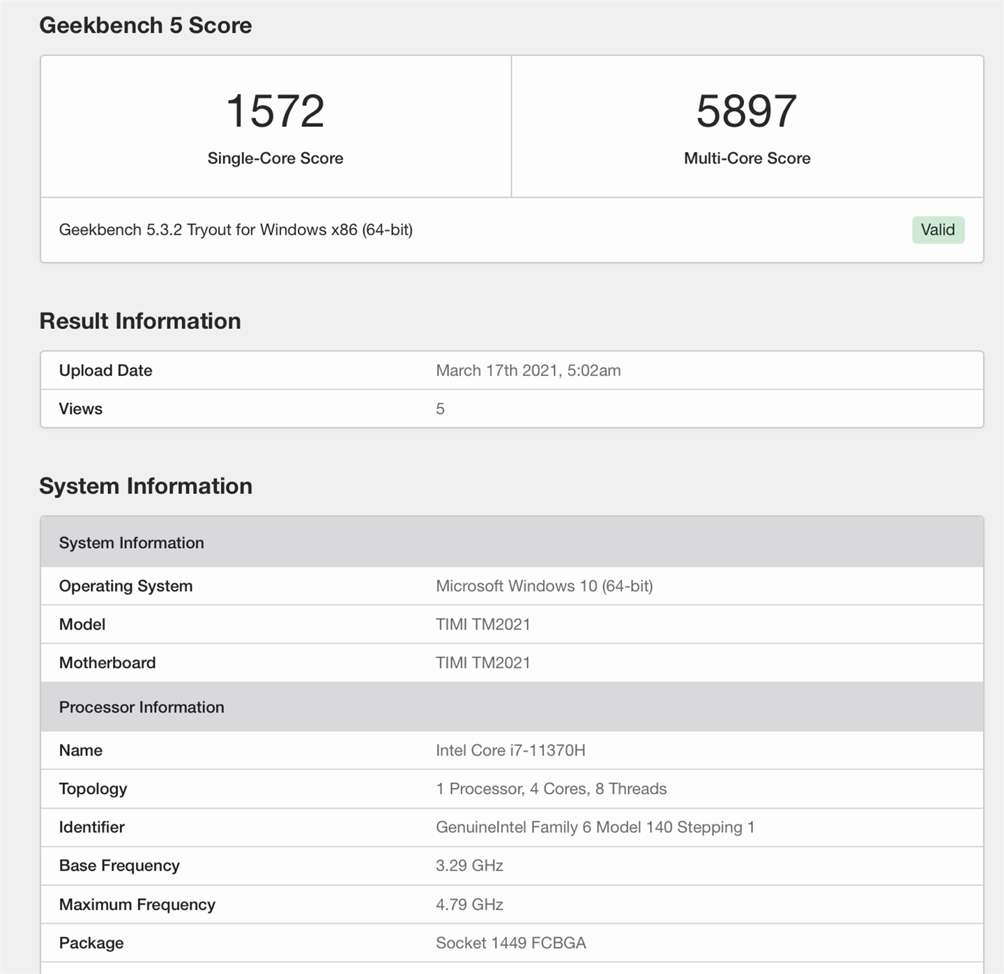 Today, a new model of TIMI TM2021 appeared on GeekBench, equipped with i7-11370H processor and NVIDIA’s unreleased RTX 3050 Ti, which is expected to be the upcoming Mi Notebook Pro.