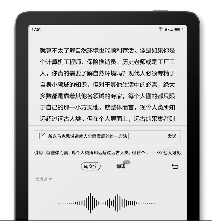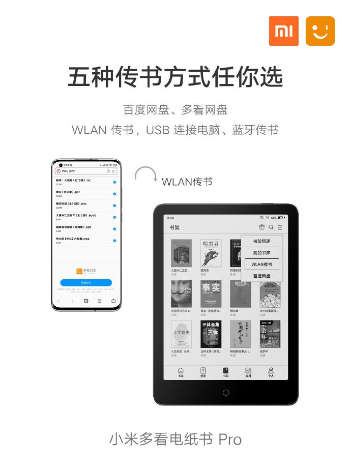 The Xiaomi Duokan Electronic Paper Book Pro supports voice search. It automatically locates keywords, making input faster, searching easier, and reading easier. The Mi Duokan Electronic Paper Book Pro supports multiple book library import methods. They are Baidu Netdisk, Duokan Netdisk, WLAN transfer, USB connection to computer, Bluetooth transfer. It also supports pdf rearrangement.