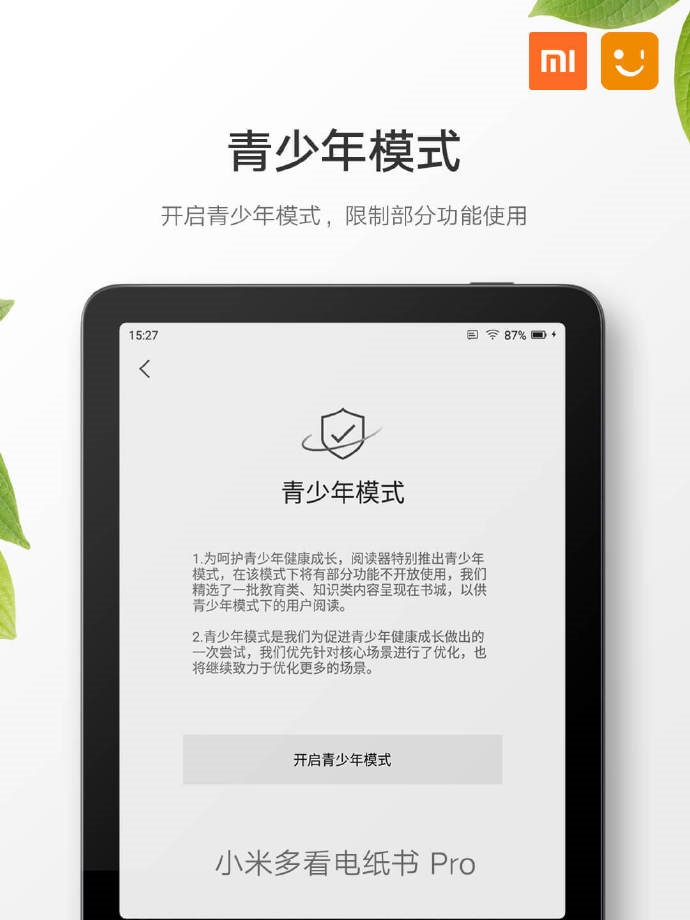 In addition, the Paper Book Pro has a high-performance 4-core low-power processor, built-in hardware EPDC controller. It also has smooth page turning operation and lower power consumption. The machine can be fully charged for up to 70 days. The Xiaomi Mi Paper Book Pro opens the youth mode, some functions are unavailable. At the same time it selects educational knowledge content. So, mothers no longer have to worry about their children secretly reading online articles.